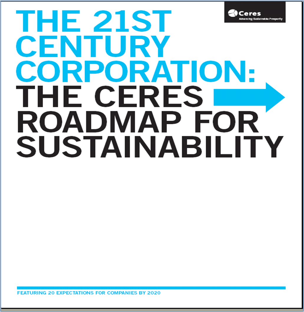 Ceres’ report, titled “21st Century Corporation: The Ceres Roadmap to Sustainability” which it released earlier this spring, contains noteworthy proposals for corporate governance and green marketing. As a network of investors, environmental organizations and public interest groups, Ceres incorporates the private sector perspective into the sustainability movement. The report encourages organizations to create serious internal metrics for sustainability rather than limiting their focus to their sales and PR efforts. Out of the 20 expectations presented for new business standards, I wanted to highlight three in particular, which, if implemented, would help align business objectives with sustainability goals in a meaningful way.